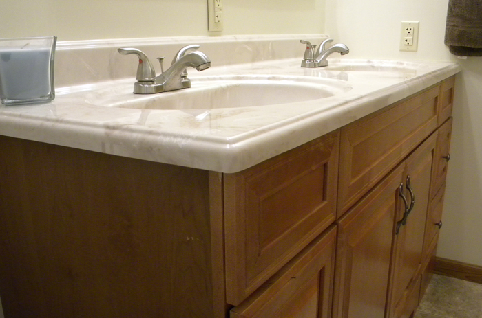 R120 - Total bathroom remodel in 1960's home; vanity with double sink. |