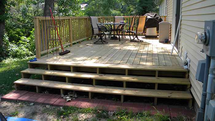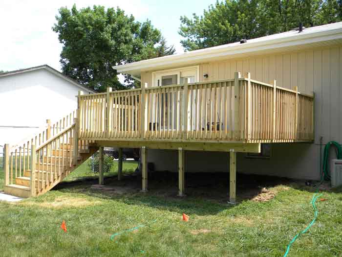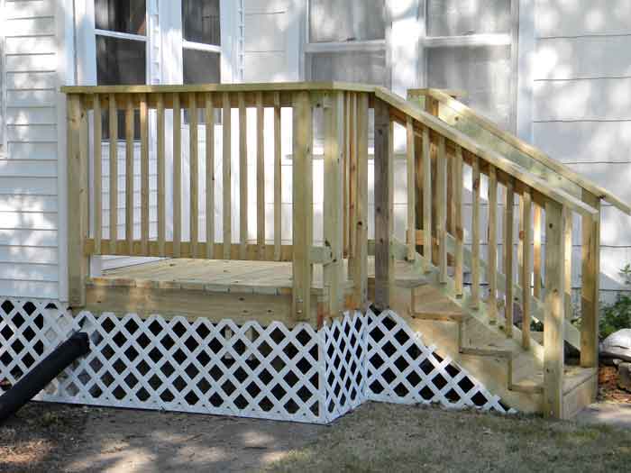 | R130 - AFTER: new wooden deck with railing. |